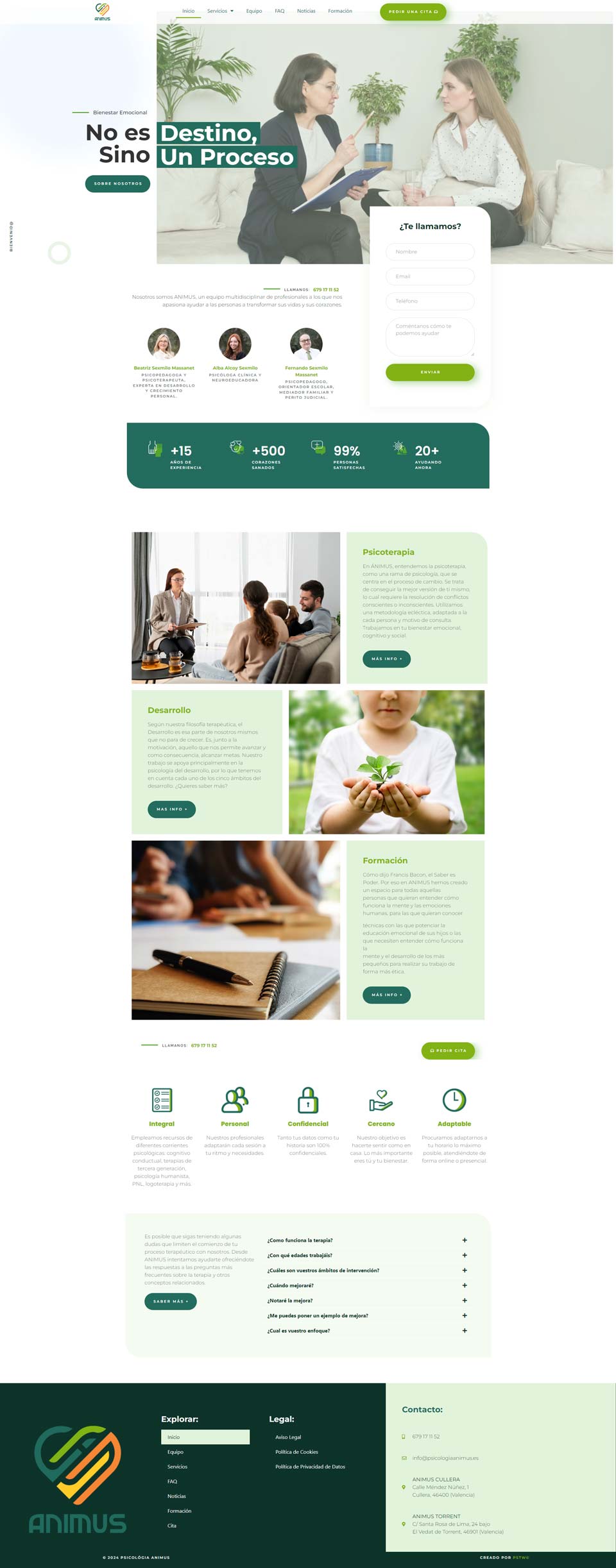 Para Psicologia Animus, creamos una plataforma web intuitiva y funcional que va más allá de la presentación de servicios. Facilitamos la reserva de citas y proporcionamos información valiosa. El diseño web refleja la identidad de la marca, con colores y elementos que transmiten tranquilidad. La web se convierte en un espacio interactivo que conecta con la audiencia de manera significativa.